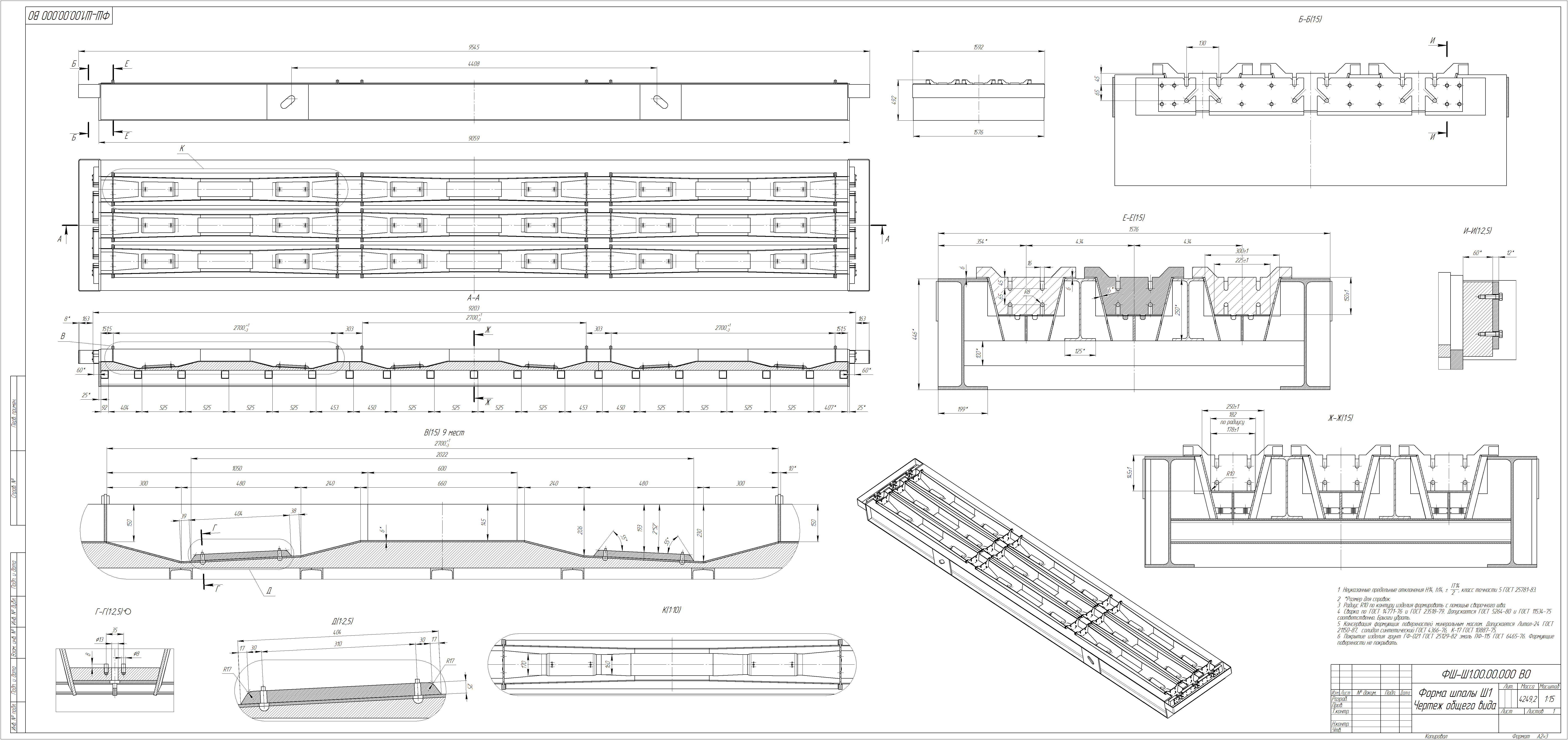 Луховицкий машиностроительный завод изготовит металлоформы для изготовления железобетонных шпал. на 4 шпалы 640 000 рублей, на 9 шпал - 1 120 000 рублей, на 12 шпал - 1 380 000 рублей.